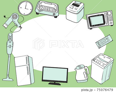 新生活家電セット 横長方形 単色塗りのイラスト素材